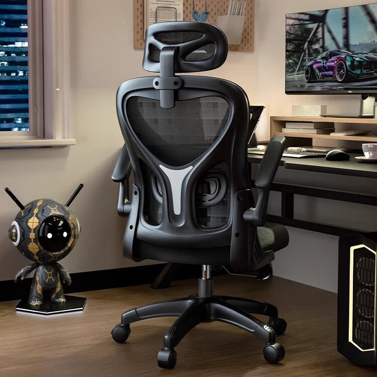 Эргономичное кресло для дома и офиса с регулируемой поясничной поддержкой и черной рамой.
