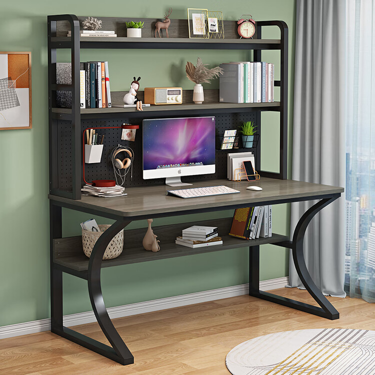 Компьютерный стол Xinmeikai с полкой для хранения, органайзером и встроенной книжной полкой, черная рама + карбон, 140x60x170 см