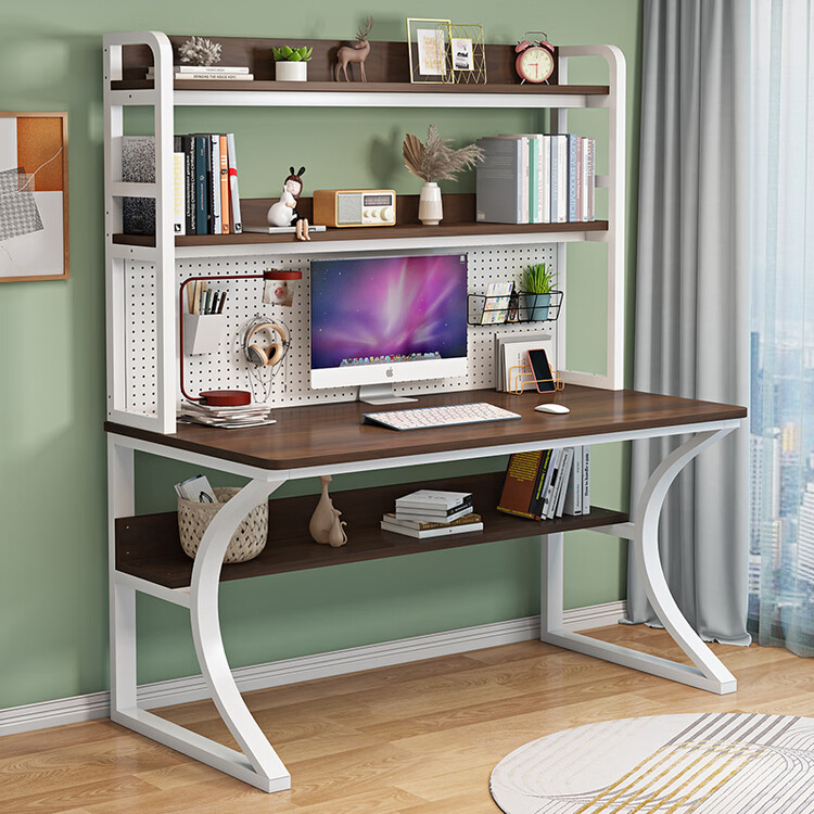 Компьютерный стол Xinmeikai с полкой для хранения, органайзером и встроенной книжной полкой, черная рама + карбон, 140x60x170 см 35 287₽