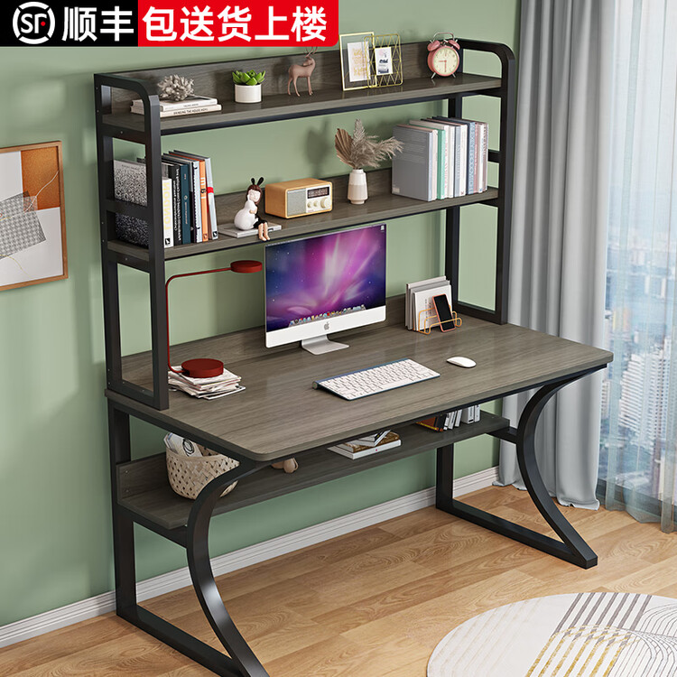 Компьютерный стол Xinmeikai с полками, 140x60x170 см, белый + светлый орех [перфорированная панель]