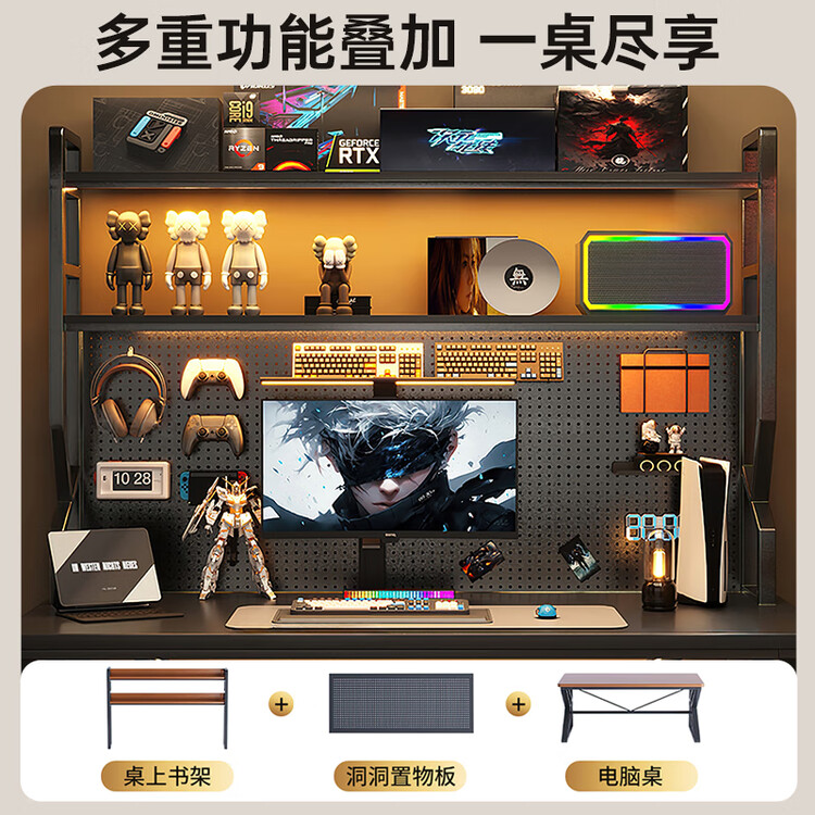 15MM [Лунный белый + Белая рама] Компьютерный стол Pegboard