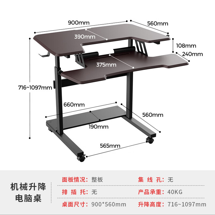 Механический стол с регулируемой высотой [коричневый стационарный лоток для клавиатуры]