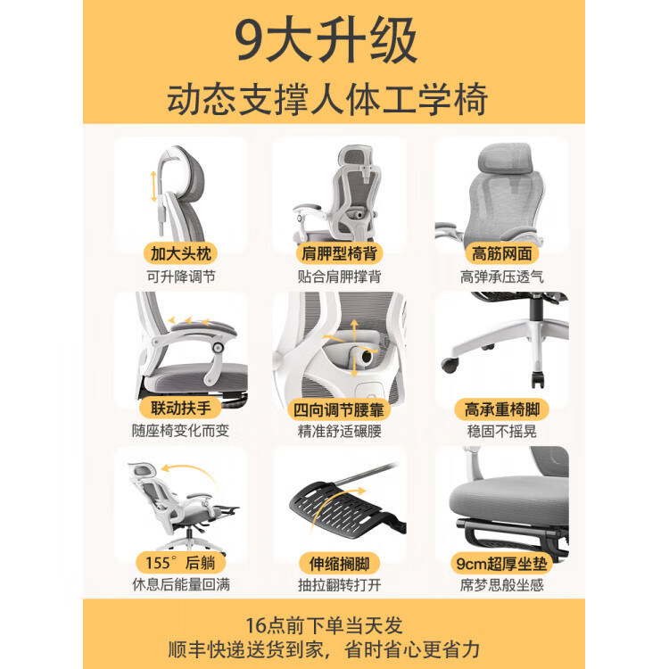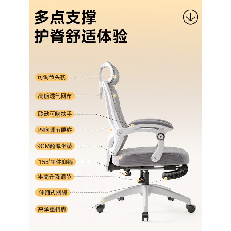 Эргономичное офисное кресло SIHOO с регулировкой по высоте, 4-уровневым газлифтом и 9 см толстой латексной подушкой. Без подставки для ног.