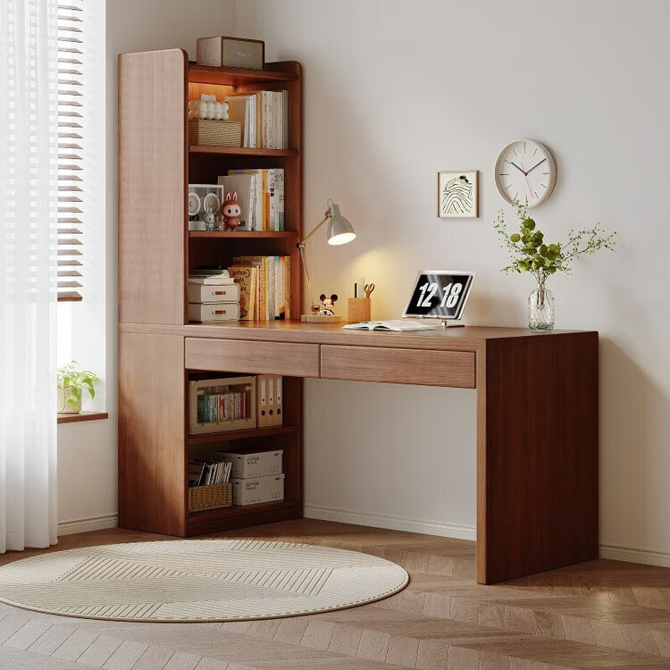 Угловой стол Naijia 100 см с полками, глубокий орех, двойной ящик