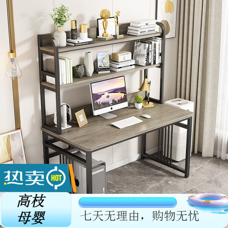 Стол компьютерный 100x60 см с полкой, белая рама + карбон