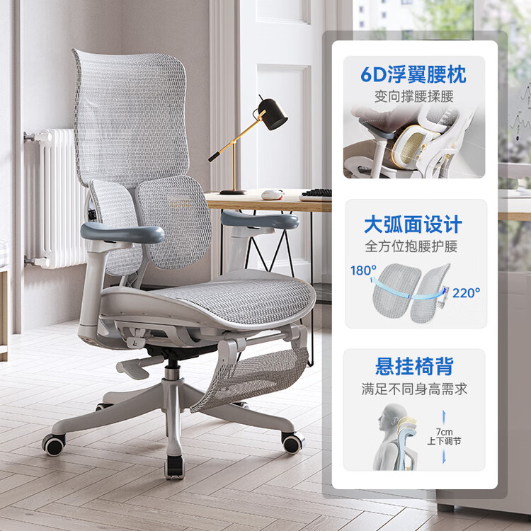 Эргономичное кресло SIHOO S100 Cloud White с подставкой для ног