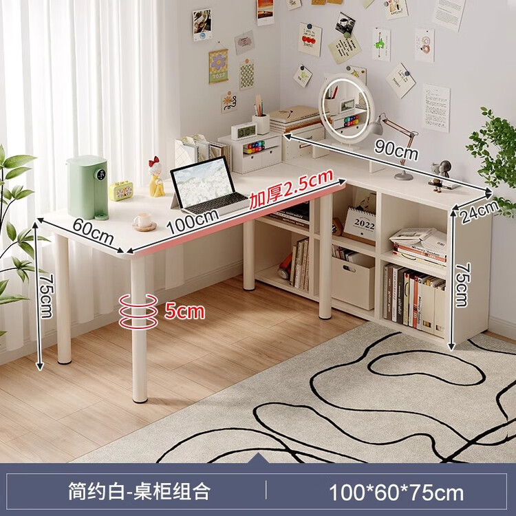 Простой белый стол Naijia размером 100x60 см с полузакрытой тумбой, идеально подходит для дома и офиса.