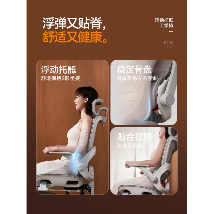 Эргономичное кресло SIHOO B100Lite-Yao Black-Advanced с трехслойной поясничной поддержкой Slingshot, откидными подлокотниками и сетчатой обивкой.
