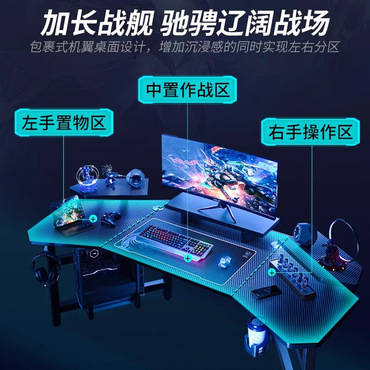 Компьютерный стол Naijia с полками, 140 см, карбон