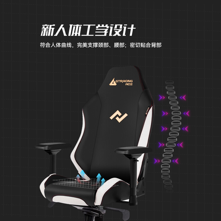 Игровое кресло GTRACING High-End Luxury Phantom White с антивзрывным авиаподносом, регулируемой поясничной поддержкой, роликами и подголовником.