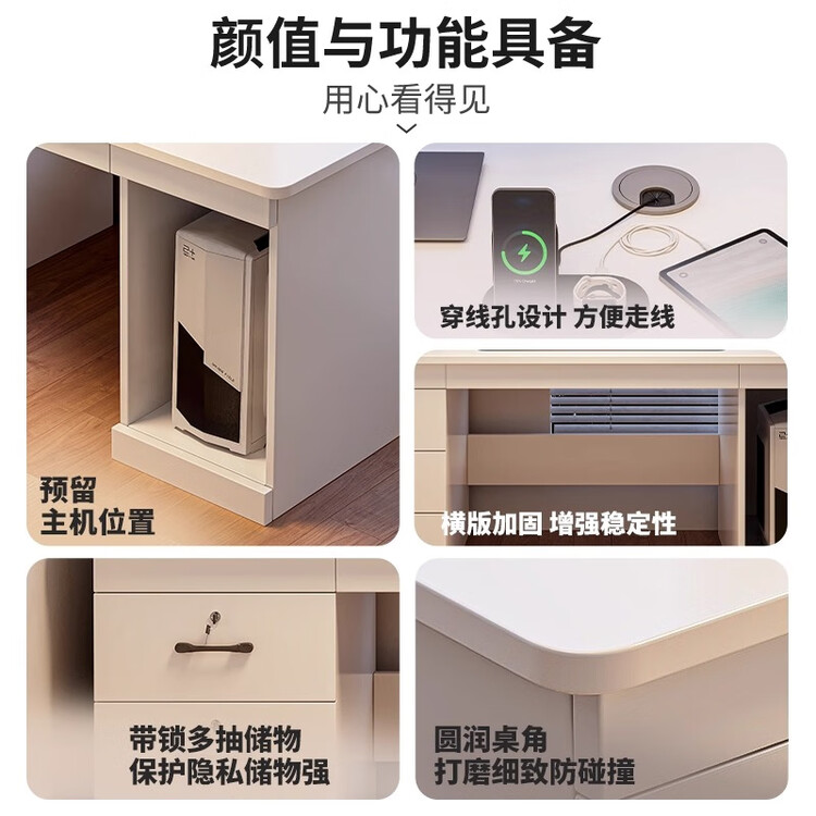 Стол компьютерный 120 см с тремя ящиками и дверцей, цвет warm white