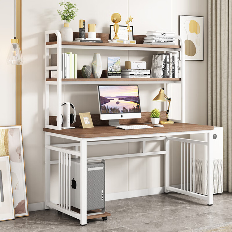 Стол компьютерный 100x60 см с полкой, белая рама + Armani Gray