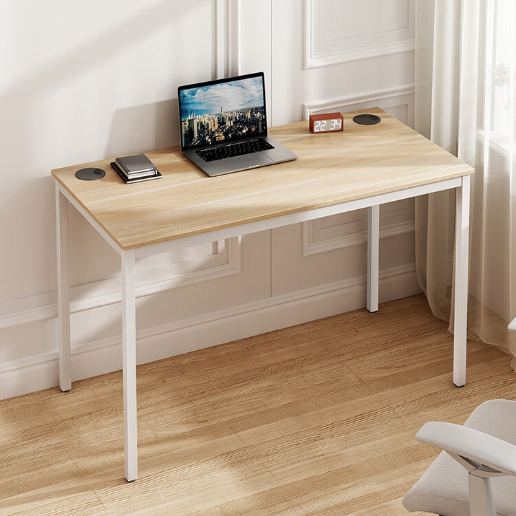 Игровой компьютерный стол PSEAT 120 см с текстурой клена и белыми ножками. Идеален для дома и офиса.