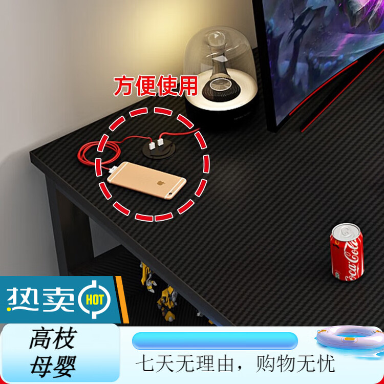 Стол компьютерный 80x60 см, белая рама + карбон, с USB-портом