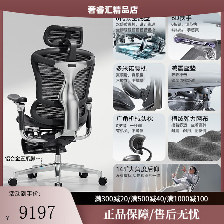 Кресло SIHOO C500 Glossy Black + Space Base + Footrest с установкой 131 996₽