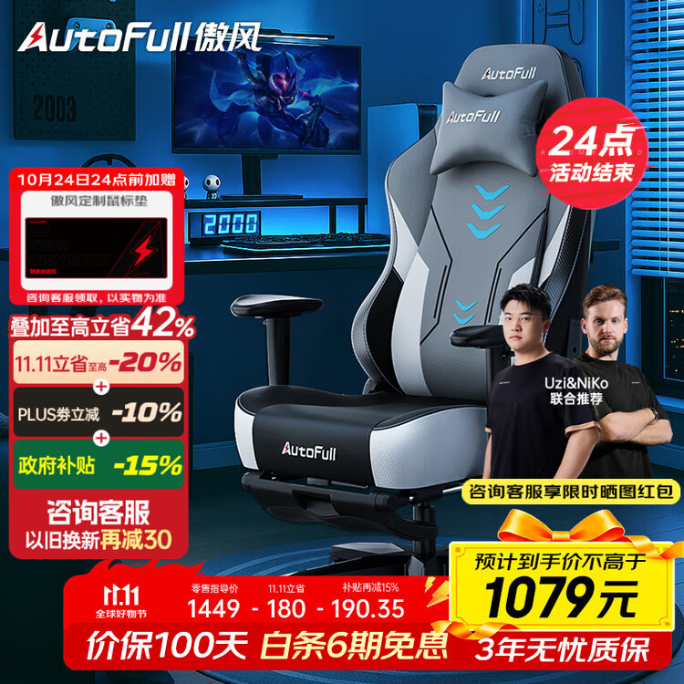 Gaming Chair AutoFull C3 Titanium Footrest Model [High-Tech Breathable Leather]