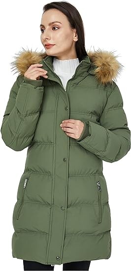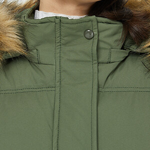 Женское утепленное пальто со съемным капюшоном с отделкой из искусственного меха, застежка на молнию и кнопки. Толстая подкладка и манжеты из ребристого трикотажа обеспечивают тепло- и ветрозащиту. Воротник-стойка защищает шею от холодных сквозняков. Идеально подходит для холодных ветреных дней.