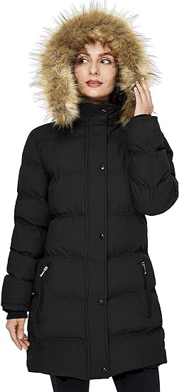 Женское утепленное пальто со съемным капюшоном с отделкой из искусственного меха, застежка на молнию и кнопки. Толстая подкладка и манжеты из ребристого трикотажа обеспечивают тепло- и ветрозащиту. Воротник-стойка защищает шею от холодных сквозняков. Идеально подходит для холодных ветреных дней.