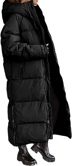 Модное длинное стеганое пальто с капюшоном, застегивается на двустороннюю разделительную молния, манжеты на рукавах в рубчик, боковой подол с разрезом на молнии для удобства перемещения, два кармана для рук на молнии и один внутренний карман для удобства хранения.