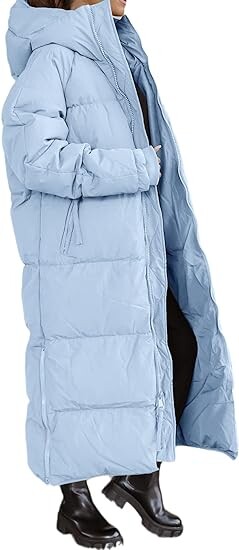 Длинное стеганое пальто с капюшоном Tankaneo Maxi, голубой