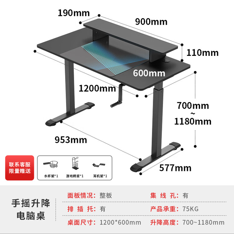 Игровой стол PSEAT с ручной регулировкой высоты 1.2 м