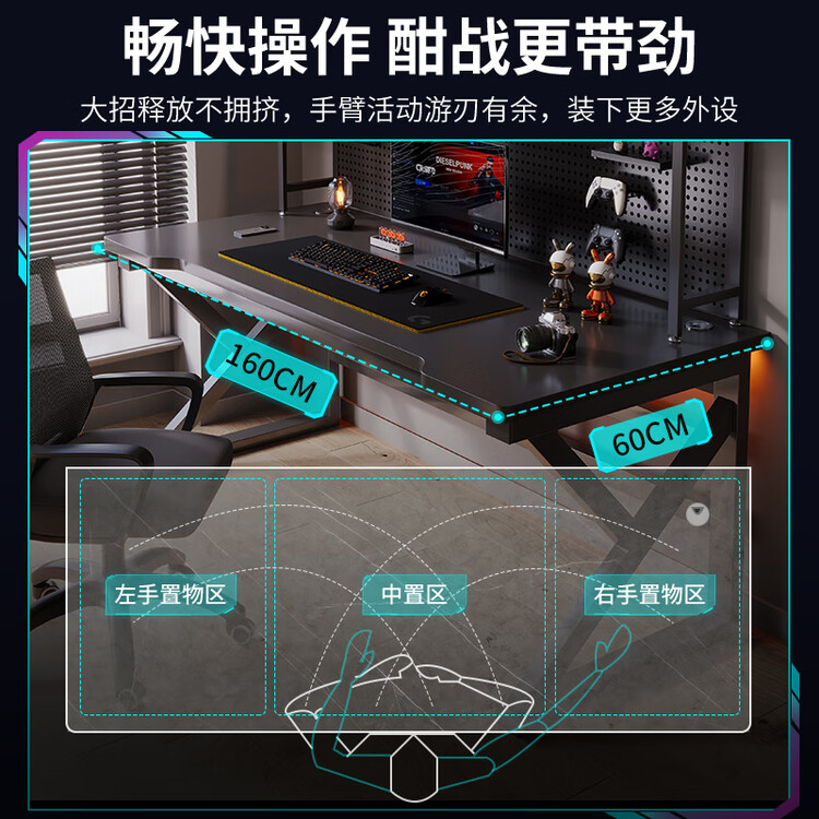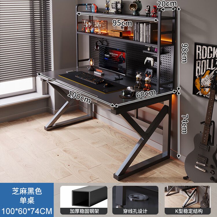 Компьютерный стол Naijia с полкой 100 см, черный, с перфорированной панелью
