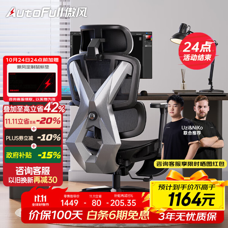 Эргономичное компьютерное кресло AutoFull G5 Performance Edition с 3D подлокотниками и сетчатой обивкой.