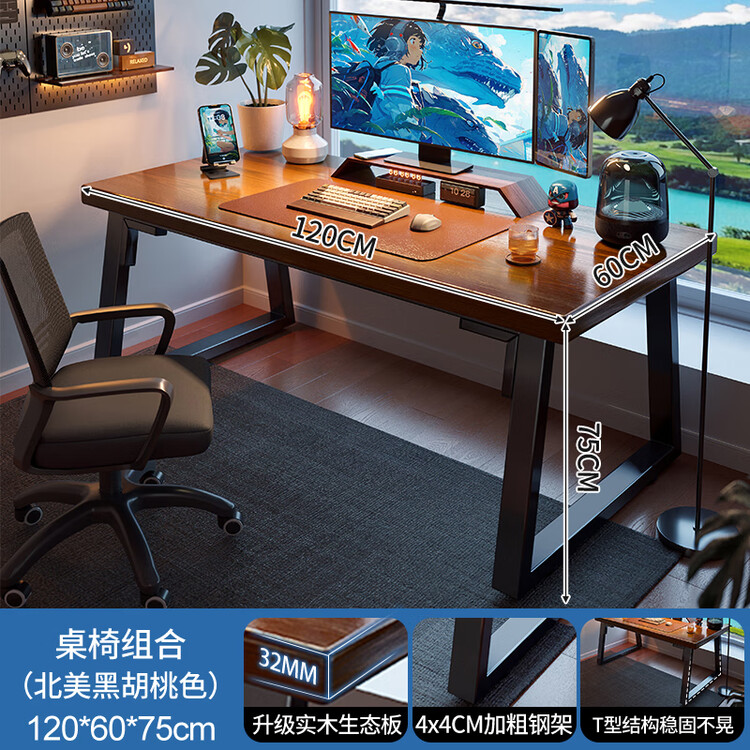 Компьютерный стол Naijia 120x60 см, письменный стол для дома, офиса и гейминга, комплект со стулом, столешница из массива черного ореха 37 585₽