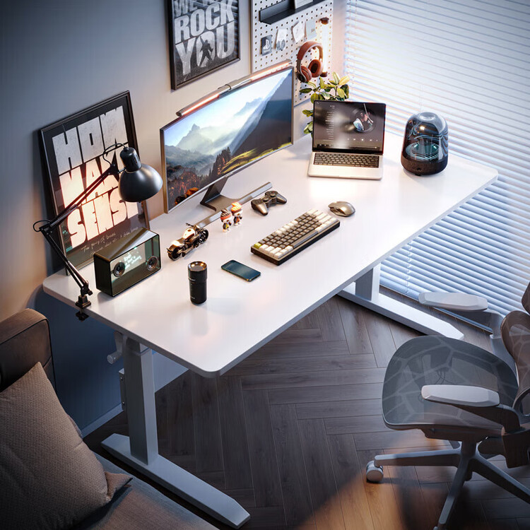 Стол 140x60 см Naijia регулируемый по высоте, компьютерный, игровой, для стриминга, белый Basic