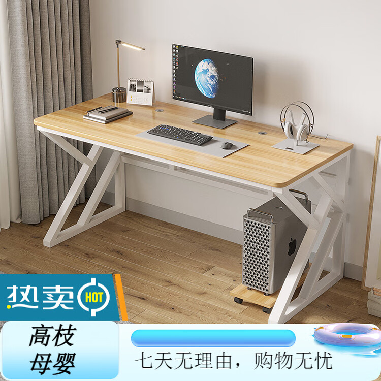 Стол компьютерный 80x60 см, белая рама + белый полосатый
