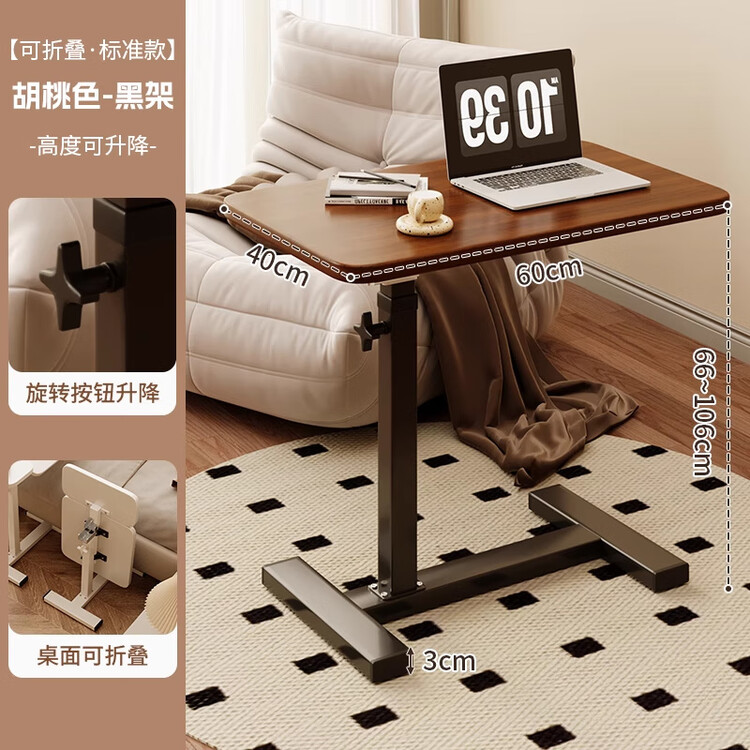 Стол складной Chuzhe Movable Bedside Table Sofa Side Small Table Simple Student Desk Foldable Laptop Computer Office Desk [Foldable Standard Model] Walnut Color - Black Frame [Movable]