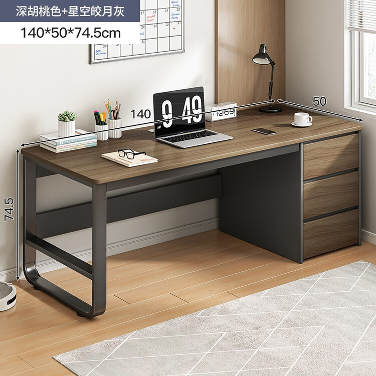 Стол 140 см компьютерный Naijia с ящиком, темный орех