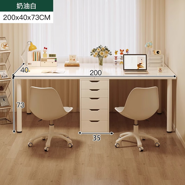 Двойной стол Naijia 200x40 см, комбинация компьютерного стола и туалетного столика для девочек, кремово-белый