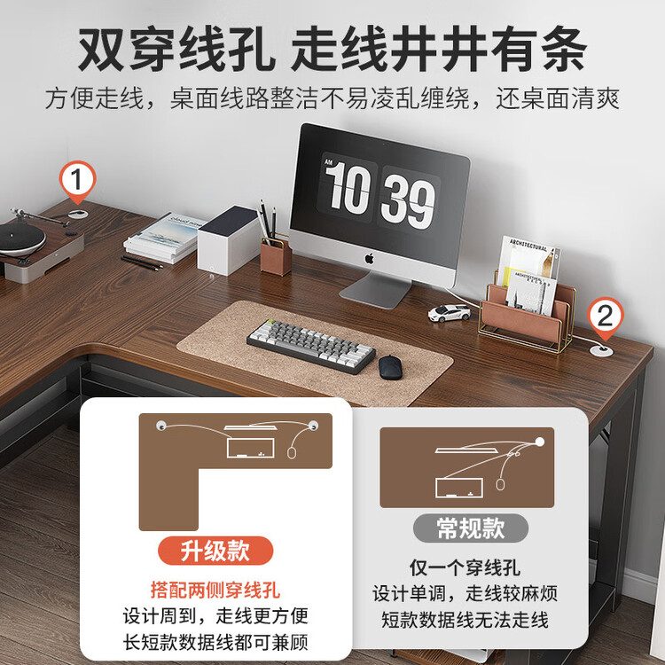 Компьютерный стол Naijia 160x100 см угловой, американский орех + черная рама, левый угол, Г-образная столешница из искусственной доски.