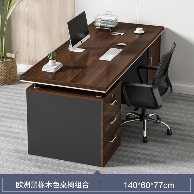 Компьютерный стол с ящиком и стулом Naijia, размер 140x60 см, цвет European Black Oak.