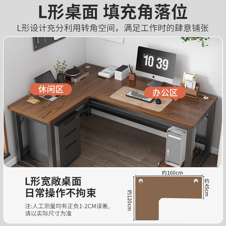 Угловой стол Naijia 120x80 см, компьютерный стол для домашнего офиса, письменный стол в спальню, цвет: североамериканский орех + черная рама, левый угол 36 107₽