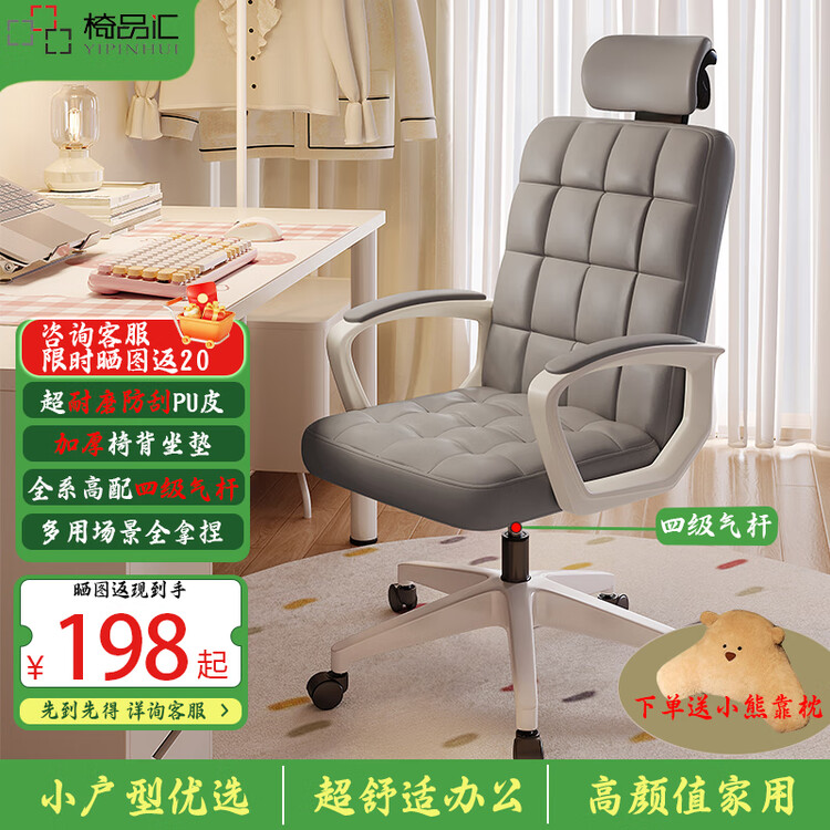 Компьютерное кресло Yipinhui Space Gray Second Generation Basic Model с 4-уровневой газовой пружиной, регулируемой спинкой и подголовником.