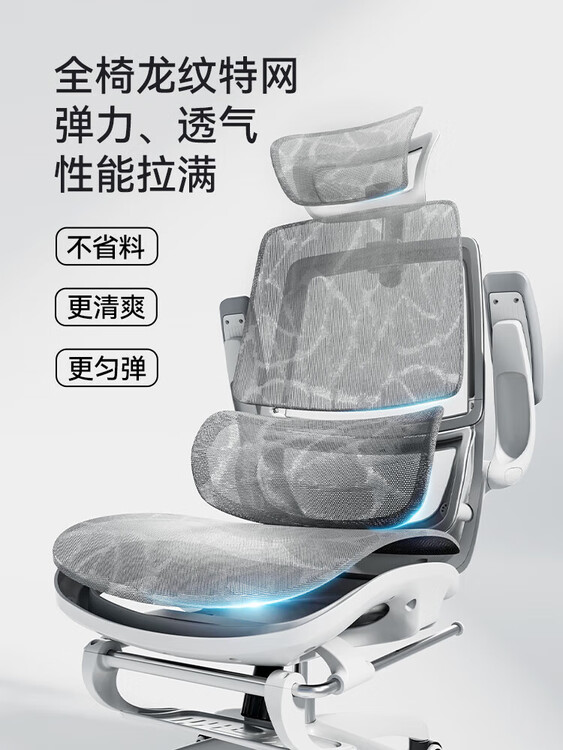 Эргономичное кресло SIHOO M59Pro Gray с полностью сетчатой спинкой Dragon Pattern, адаптивной поясничной подушкой и 3D подголовником.