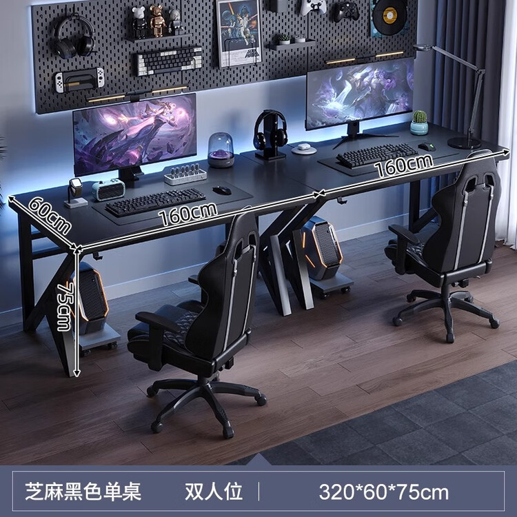 Компьютерный стол для двоих 320 см с кабель-каналом, Sesame Black