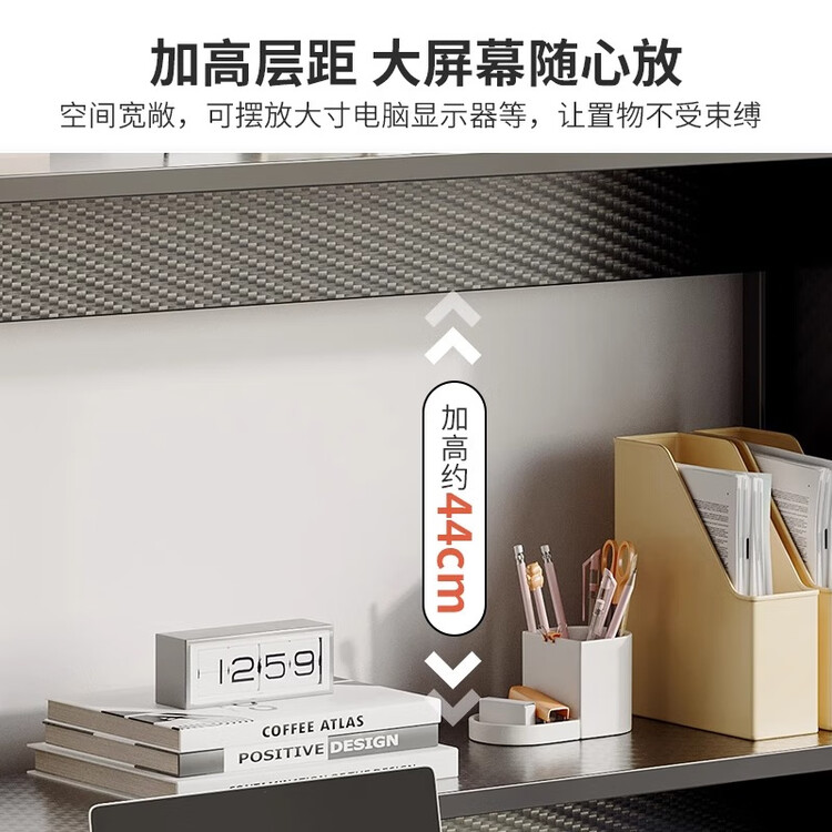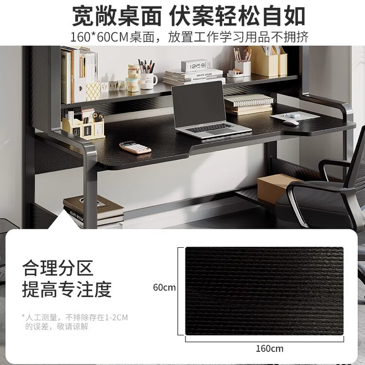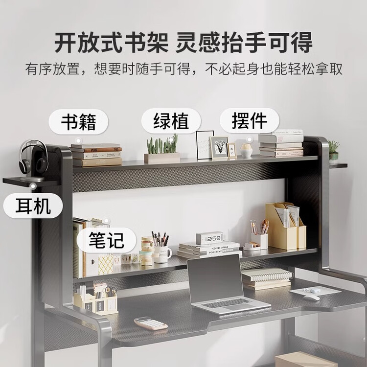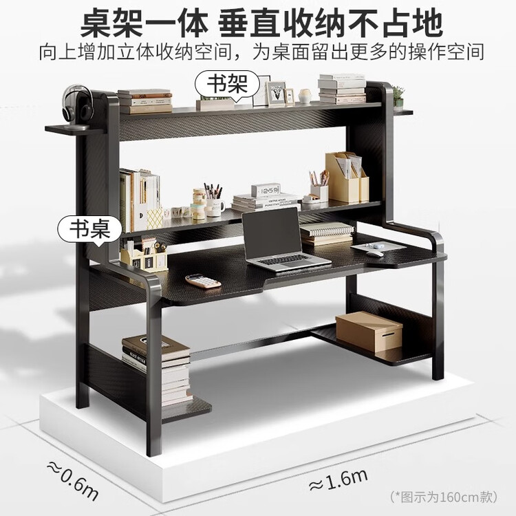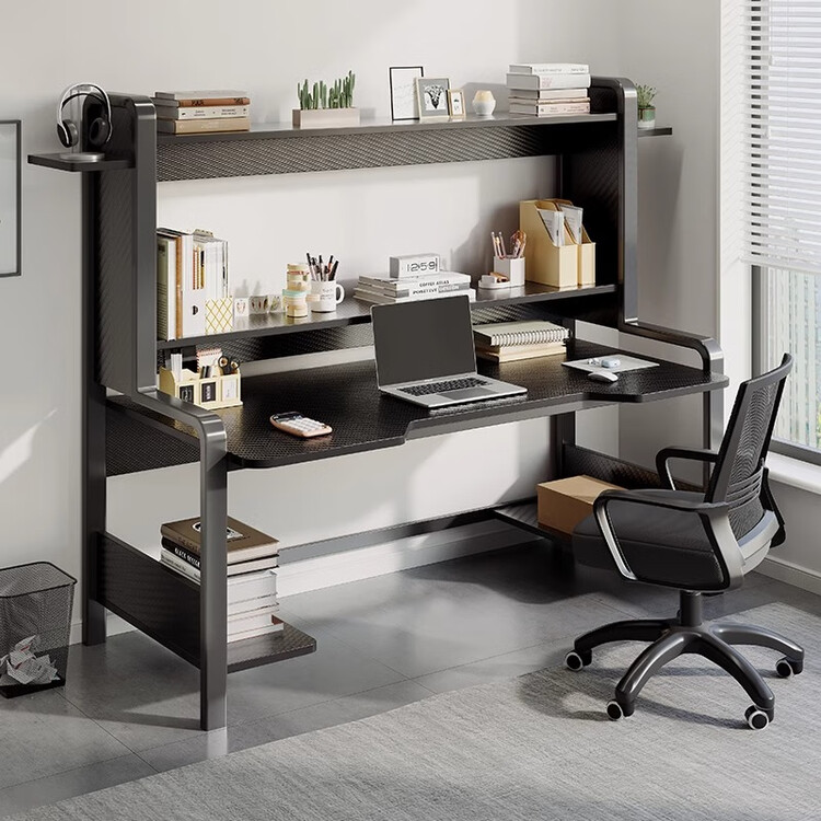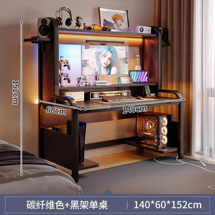 Компьютерный стол с полкой 140 см, Carbon Fiber + Black Frame, Dual Main Unit Positions