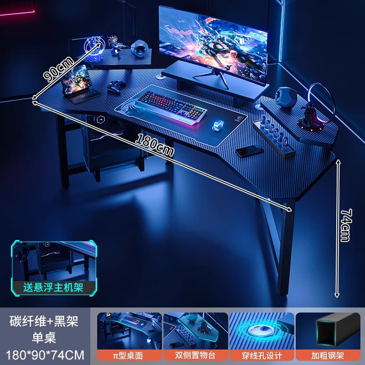 Компьютерный стол Naijia с полками, 180 см, карбон