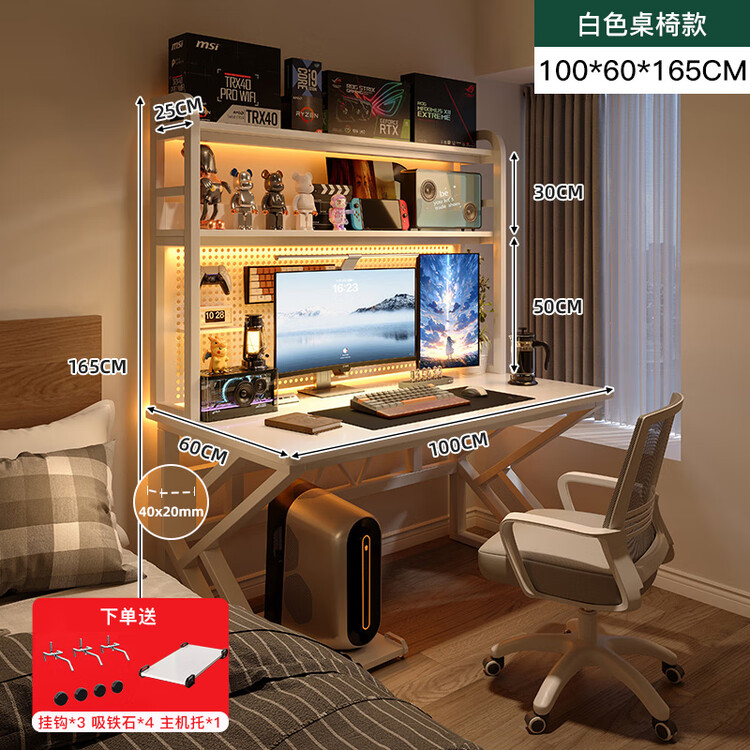 [Набор стола и стула] Белый стол 100 см с перфорированной панелью + стул