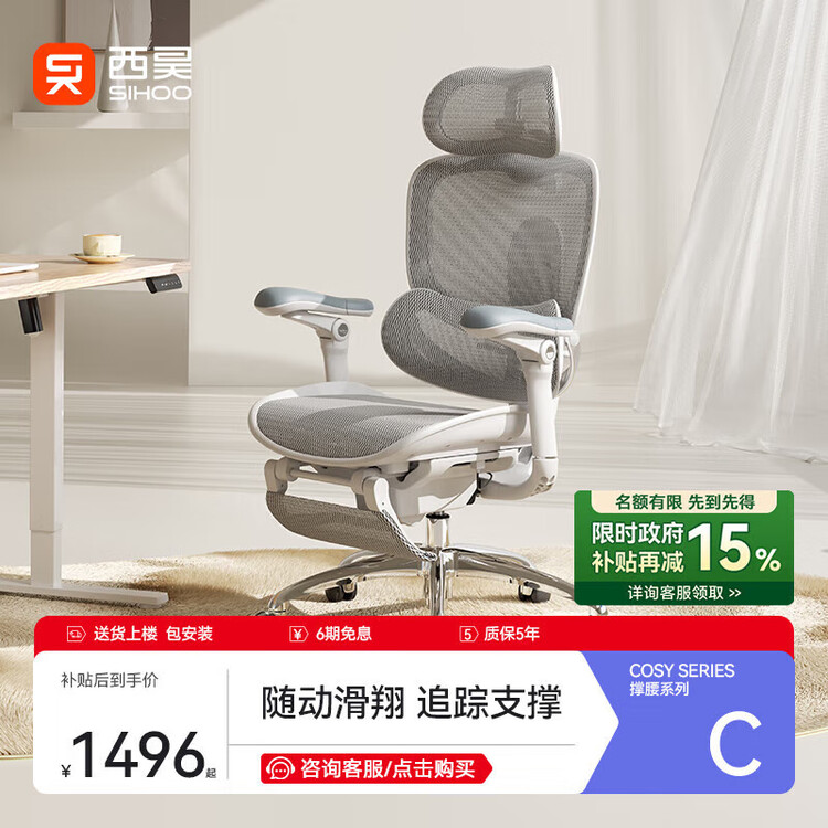 Кресло SIHOO C300Ultra Cloud White с подставкой для ног 146 870₽
