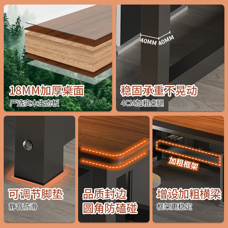 Деревянный письменный стол Yiman 140x60x75 см, цвет грецкий орех, для дома, офиса и игр. Прямоугольная столешница из массива дерева толщиной 18 мм.