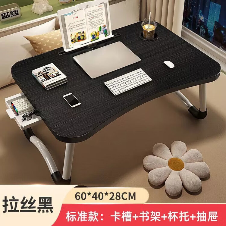 Складной стол для ноутбука Oren Ford с ящиком, держателем для чашки и полкой, черный