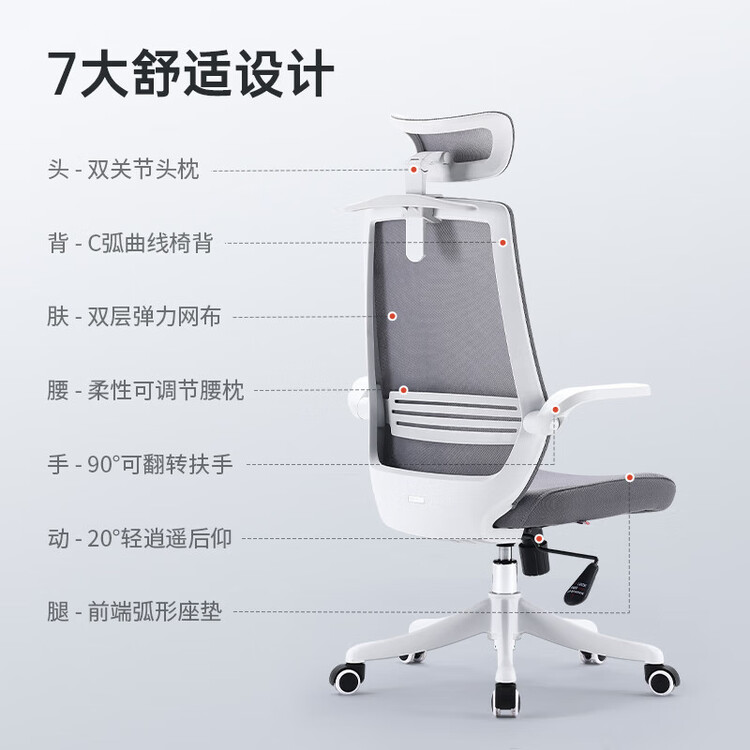 Эргономичное кресло SIHOO M76, регулируемое по высоте, серое сетчатое