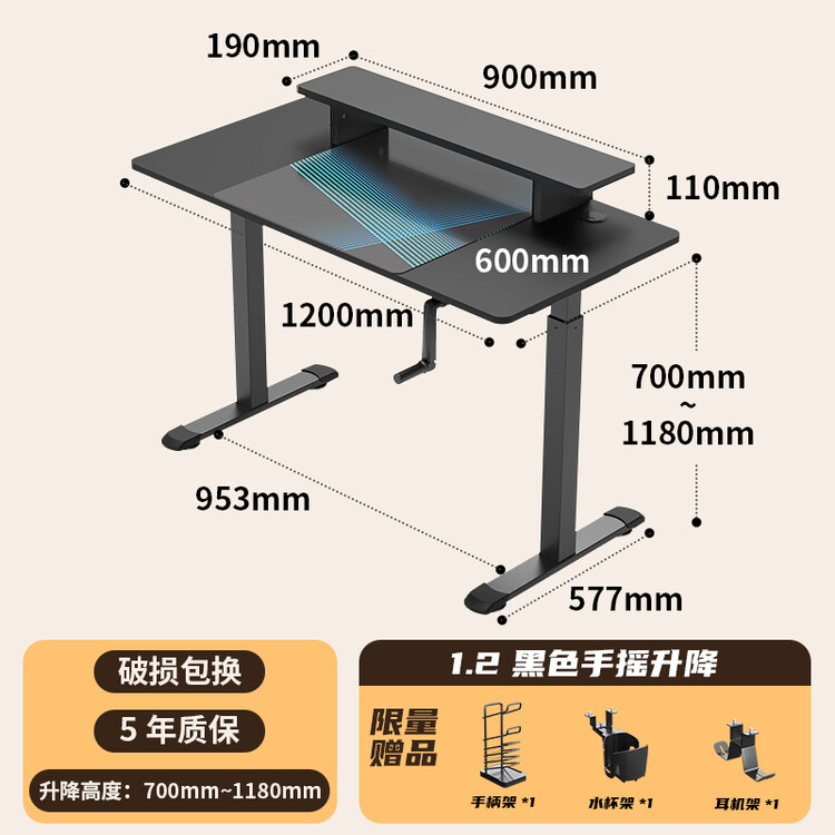 1,2-метровый компьютерный стол с ручным подъемным механизмом