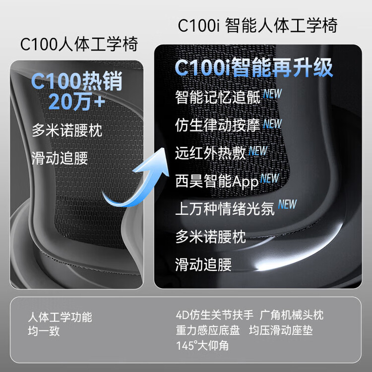 SIHOO Ergonomic Gaming Chair C100i, Glossy Black, 4D Linkage Armrests
