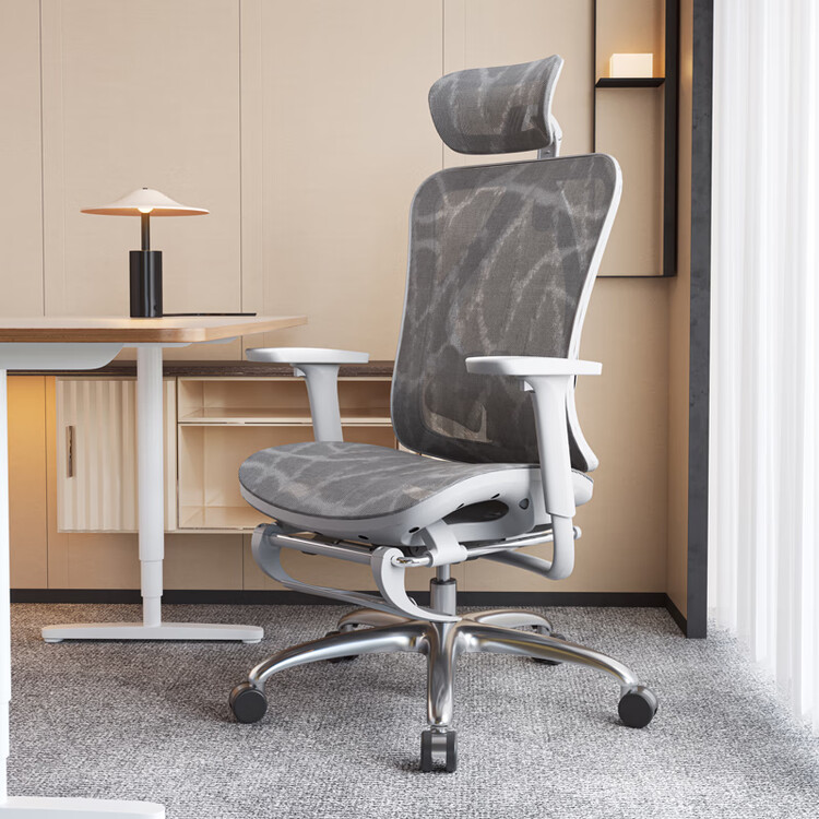 Кресло SIHOO M57C Second Generation с серой сеткой и подставкой для ног