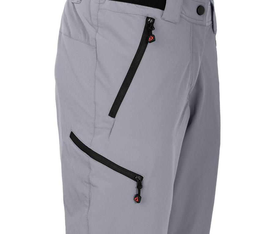 Лёгкие, прочные и технологичные женские походные брюки длиной 3/4 летней длины капри с новым, невероятно удобным и комфортным поясом. Идеально подходят для походов, велоспорта или отдыха. Двойная биэластичная ткань приятная на ощупь, но при этом прочная на разрыв, дышащая и быстросохнущая, а также обработана водоотталкивающей пропиткой без ПФУ. Лёгкая двойная ткань, прочная на разрыв и очень эластичная. Не содержит ПФУ. Очень удобный и эластичный пояс. Быстросохнущий и дышащий. 2 боковых кармана на молнии, 1 карман на молнии на штанине.